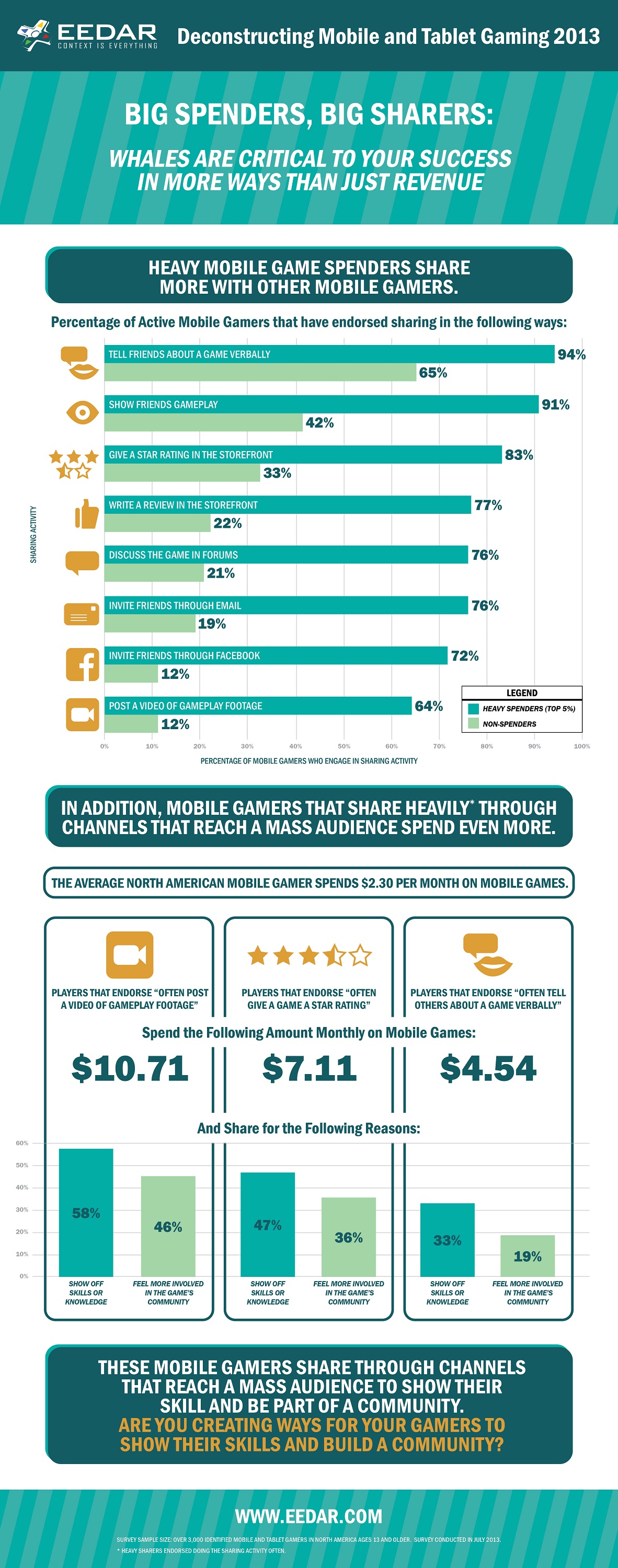 Eedar has kindly laid out its survey results in a nicely designed infographic (see below) but what it evident is that ‘power’ mobile gamers who tend to Visit PlayOnlineCasino.irish are a great resource for app developers to spread the word about its app. If developers or publishers don’t provide ‘sharing’ platforms for this type of player then it becomes a wasted opportunity to boost its app chances.
